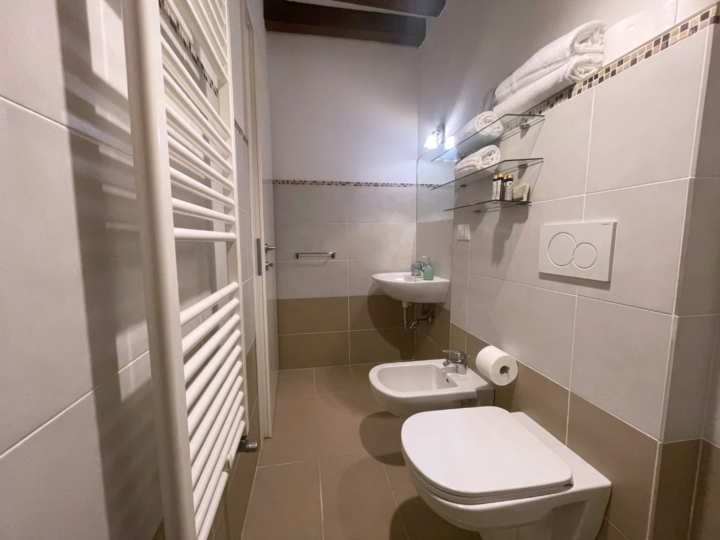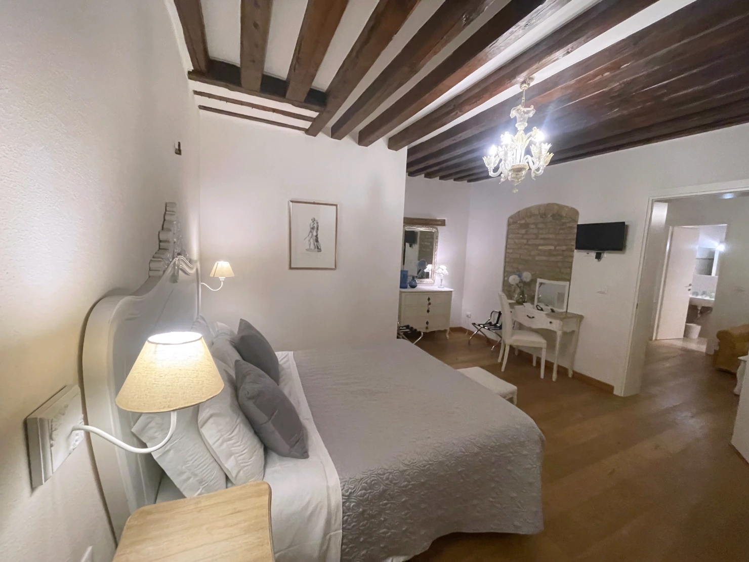 Spacious and bright master bedroom of about 35 square meters furnished with elegant style and attention to details. It has a sitting area with sofa. The room has a spacious wardrobe, table, flat screen LCD TV, air conditioning, heating, private bathroom with shower, heated towel rail and hairdryer. Bed is queen size.